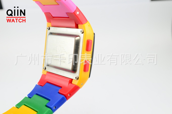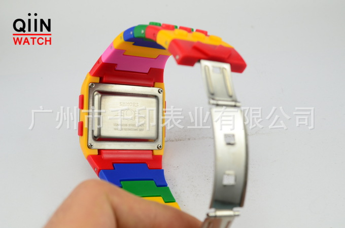 表带:优质硅胶表带(可用不锈钢/真皮/PU皮/PVC/塑胶/铜/钨钢/陶瓷/钛/玉/木等,具体按客户要求生产),可订制LOGO