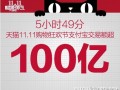 - 天猫双十一不到6小时 支付宝交易额突破百亿大关