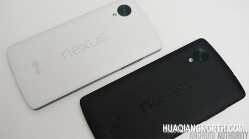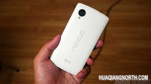 黑色机型背面类似的橡胶材质提供了很好的握持感。如果你亲手感受过Nexus 7 (2013),你就会知道Nexus 5的手感是怎样的。垂直的Nexus和LG的logo采用浮雕设计,很有光泽质感,为本不张扬的设计增添了亮点。