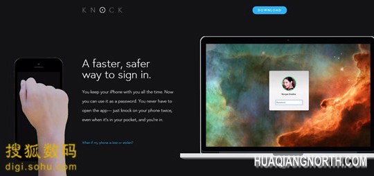 【搜狐数码消息】11月7日消息,人类为了偷懒总是会想出各种千奇百怪的点子。通过一款名为Kncok的应用,Mac用户再也不必通过输密码来解锁自己的设备了,只需敲击两下iPhone便搞定。