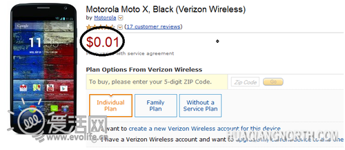 Verizon版Moto X昨天刚欢欣鼓舞地吃上Android 4.4 KitKat,今天便惨遭甩卖:亚马逊已经将Verizon合约版的Moto X价格下调至1美分,基本上就等于是免费送了(在美帝的小伙伴们可以放开手脚疯抢了)......据悉,销量不佳是本次跳楼甩卖的罪魁祸首。有趣的是,AT&T版Moto X的合约价依然是349美元,裸机价格则为669.99美元。