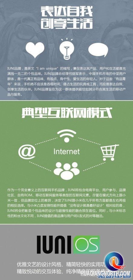 IUNI将做成一个互联网手机品牌,包含电商平台、用户参与、品牌社区、自有ROM等。与小米凸显发烧性能不同的是,IUNI将把设计与性能的融合放在首位,提倡品牌与用户间的对等融洽。