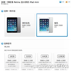 iPad mini Retina 16GB黑/白3380元;32GB黑/白4200元;64GB黑/白4900128G黑/白5800元。